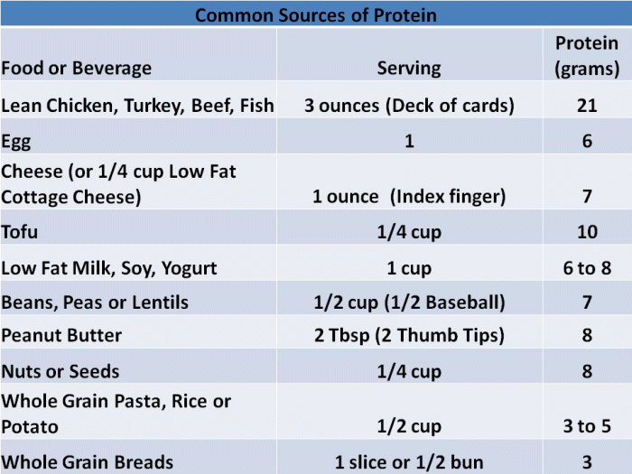 Breakfast: 6 ounces orange juice, 1 cup whole grain cereal (4) 1 cup milk (8), 1 banana OR 1 egg, 1 ounce cheese omelet (13). Midmorning Snack: 1 ounce low-fat cheese (7), 6 crackers. Lunch: 1 sandwich with 3 ounces meat (21), 1.5 cups salad (3) with 1/8 cup seeds (4), 1 cup low-fat milk (8), 1 cup melon. Midafternoon Snack: 1.5 ounces nuts (12) Dinner: 1 cup long grain rice (3), 3 ounces chicken or seafood (21), 1 cup stir fry vegetables (4), 1 cup berries. Evening Snack: Yogurt smoothie with fresh fruit (8)