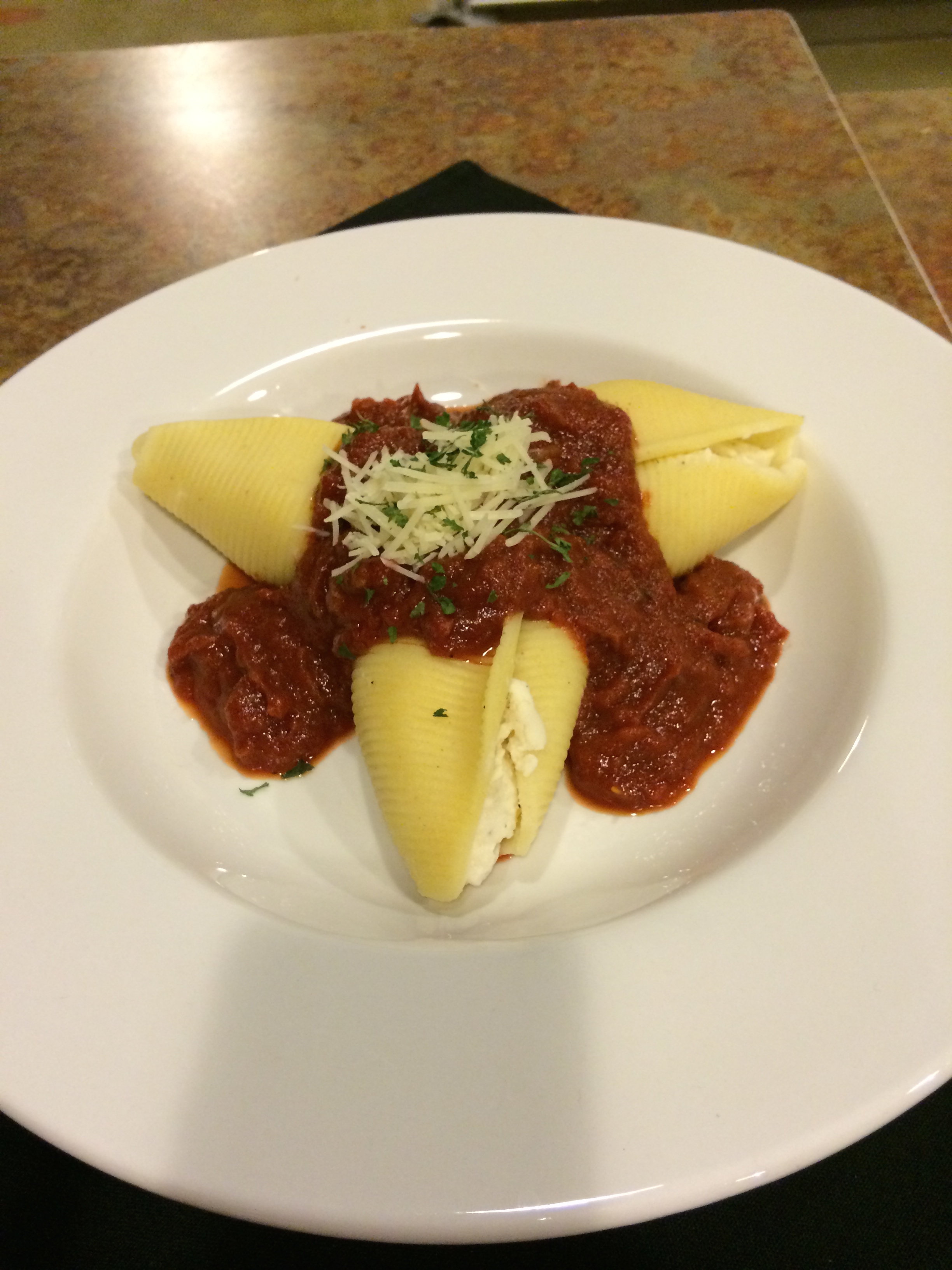 - Stuff each shell with ricotta mixture and place into baking dish.