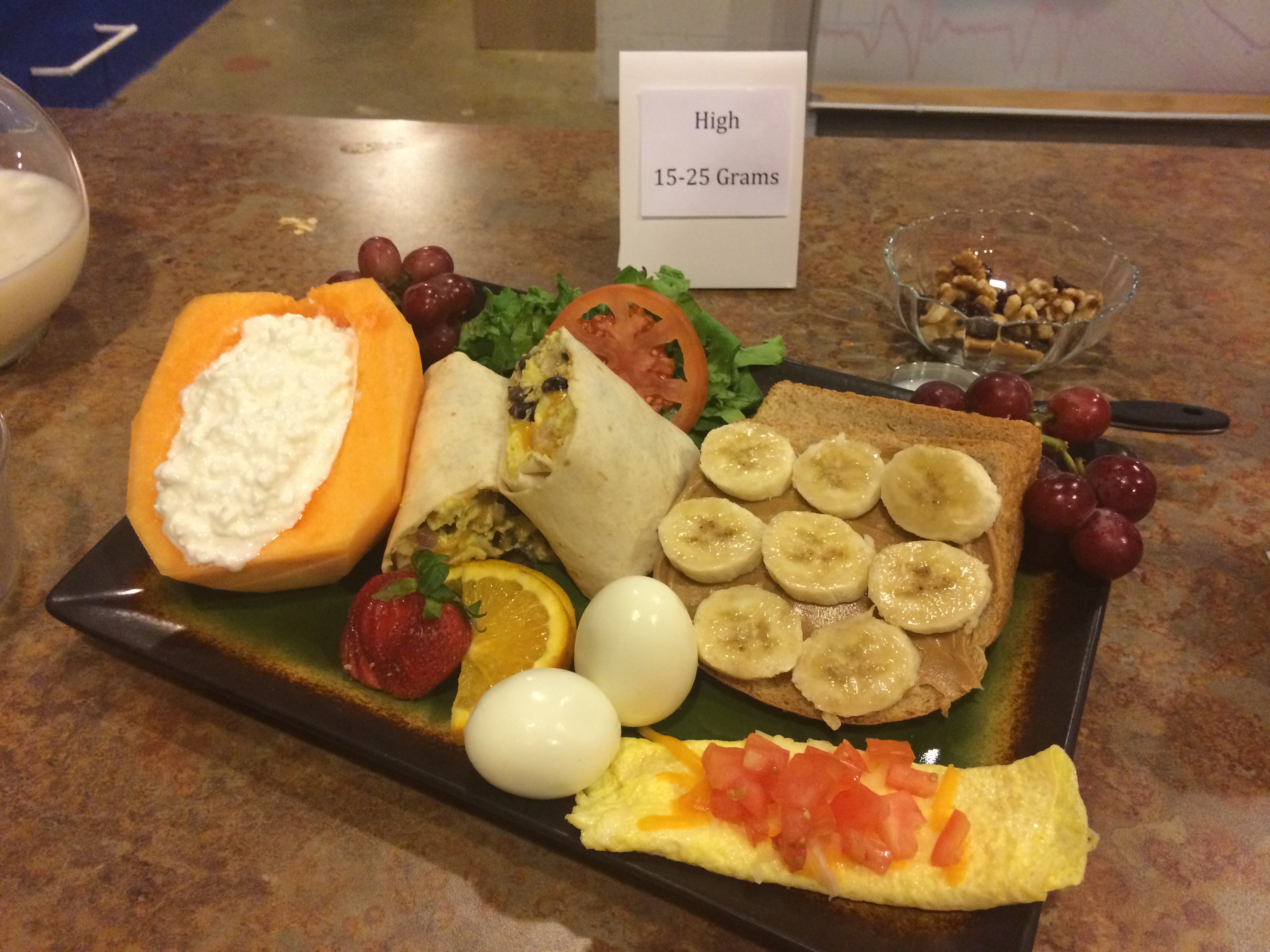 The average American consumes 90 grams of protein per day and would be better off balancing ½ their plate with more cost-effective fruits and vegetables. Just as a cup can hold only so much water, the same is true of muscle and protein. Too much protein may be burned as energy or worse, converted into fat when consumed in conjunction with too many calories.