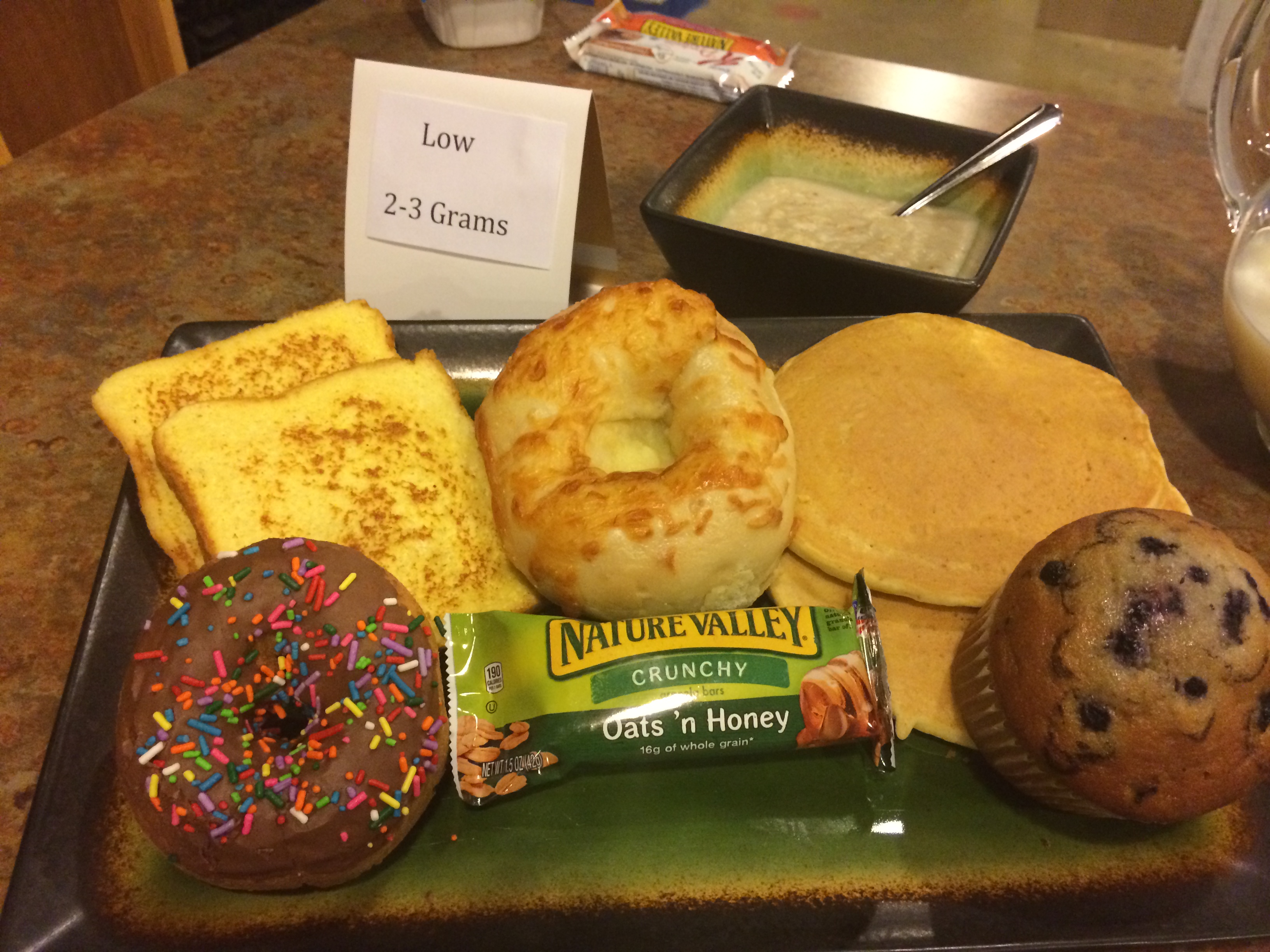 Midmorning Snack: 1 ounce low-fat string cheese (7) + 6 whole grain crackers (3) or low-fat Greek yogurt (12)