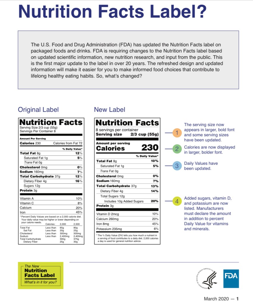 In March 2020, the Nutrition Facts Label was refreshed to help us better track the added grams of added sugar contained in our foods and beverages. Understanding the potential negative impact on sales, manufacturers have been quick to respond with lower sugar versions including a flood of new low and no calorie beverages, reduced sugar condiments, cereals and breakfast bars. Have you been using the new food label to track your added sugar? Are you closer the American average of 13% or trending down towards 10% or possibly even 6%? Starting simple is a smart approach. Read the food label and compare sugar contents, choose your liquid beverages wisely and begin switching up a few desserts or snacks with nuts, whole fruit and crispy, fresh vegetables.
