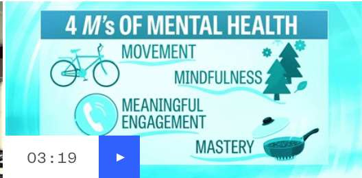 Psychiatrist Dr. Sue Varma provided these tips with tips for coping with anxiety, depressive thoughts and stress on Weekend TODAY. Her “4 M’s of Mental Health.” can help but do seek professional help when warranted.
