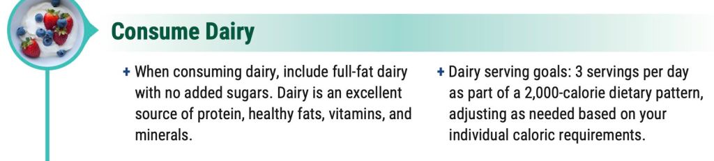 So we find ourself in a paradox where full fat dairy is back on the table. Since this is a detour from past Dietary Guidelines recommendations, consult your provider or dietitian who will evaluate this recommendation in the context of your total health. Health behaviors such as frequenting fast foods restaurants, eating predominantly high fat meats and snacks, smoking, infrequent exercise and poor sleep are all inflammatory behaviors that would impact this dietary guideline. Keep an eye out for more research on this topic as it continues to evolve. Some health organizations still warn that high consumption of saturated fat in dairy can increase your risk for various diseases. The best approach in the meantime may be a blend of low and high fat dairy in addition to the many non-dairy plant alternatives.